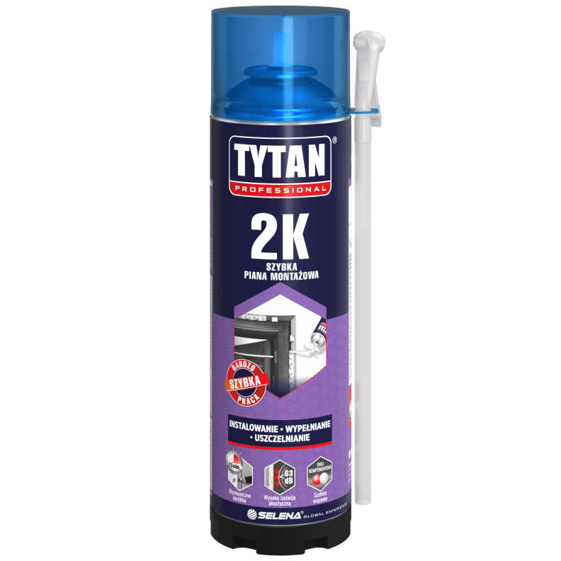 Szybka dwuskładnikowa piana poliuretanowa przeznaczona do wypełniania i uszczelniania podczas montażu okien i drzwi, parapetów oraz progów. Tytan Professional 2K to piana utwardzająca się pod wpływem reakcji chemicznej między dwoma składnikami, charakteryzująca się jednorodną, drobnokomórkową strukturą. Rekomendowana do szerokiej gamy zastosowań w budownictwie: montowanie, uszczelnianie, wypełnianie, izolowanie. Jest odporna na pleśnie i grzyby oraz na działanie wysokich i niskich temperatur. Po utwardzeniu pianę można ciąć, piaskować, gipsować lub malować.