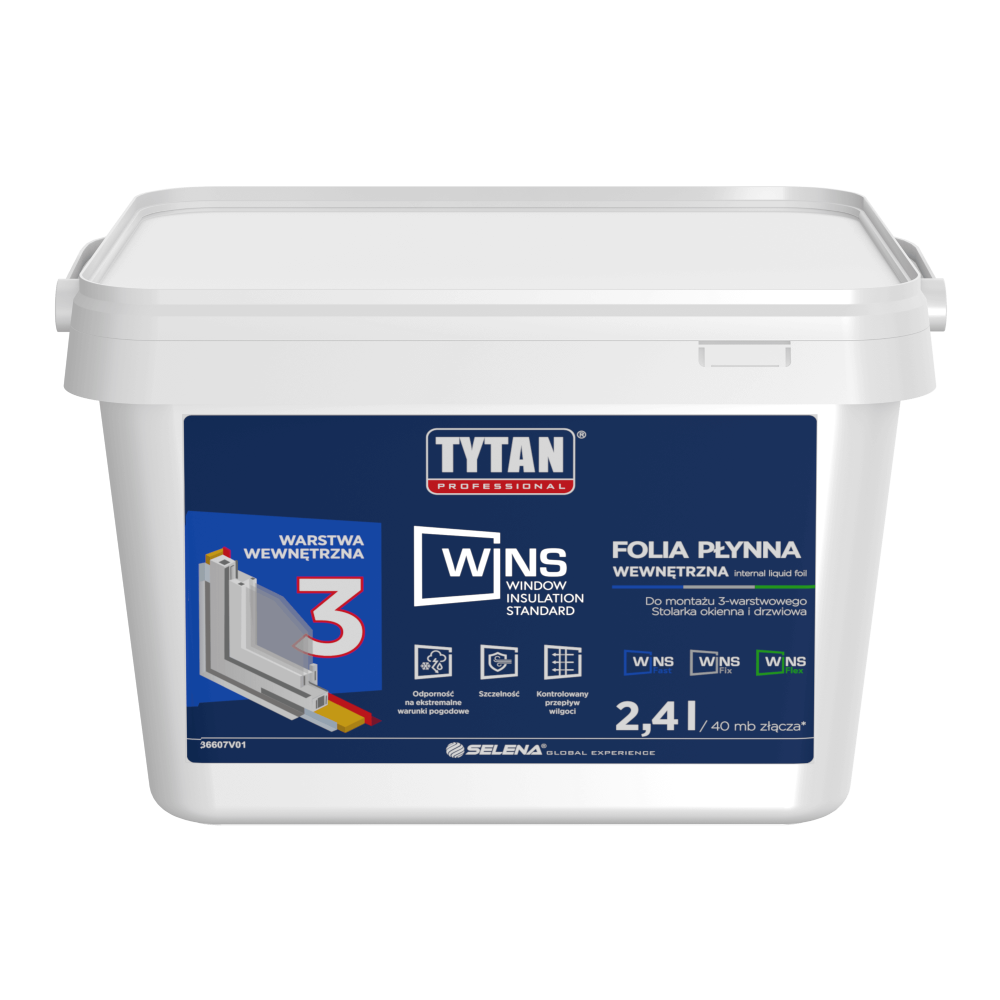 Folia płynna okienna TYTAN WINS wewnętrzna to jednoskładnikowy, gotowy do użycia, elastyczny produkt o niskiej paroprzepuszczalności. Zapobiega migracji wilgoci do szczeliny okiennej, chroniąc pianę PU przed degradacją. Folia płynna wewnętrzna jest chemicznie neutralna i przylega do większości materiałów budowlanych. Idealna do uszczelniania złączy ościeżnic z ościeżami. W połączeniu z pianą Flex i folią płynną zewnętrzną tworzy szczelną spoinę, odporną na działanie pary wodnej, wody i wiatru. Eliminuje pleśń i grzyby. Zapewnia efektywność energetyczną.