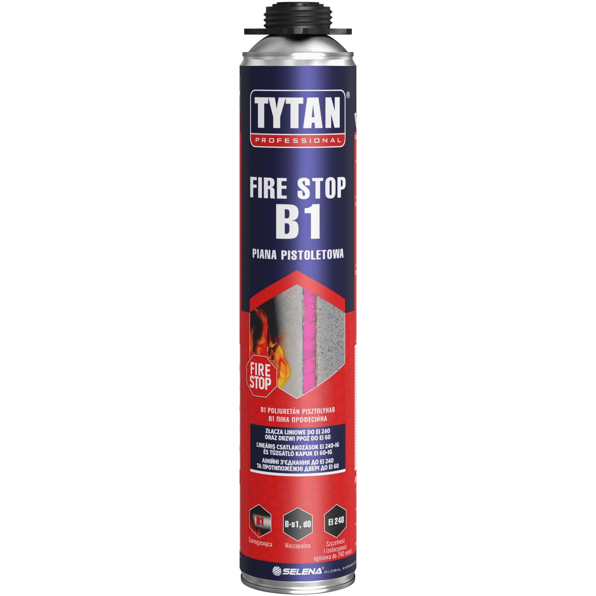 Piana Tytan Professional B1 utwardza się pod wpływem wilgoci, rekomendowana do uszczelniania pionowych i poziomych złączy liniowych o klasie odporności ogniowej do EI 240 oraz drzwi o klasie odporności ogniowej do EI 60. Wykazuje doskonałą przyczepność do typowych materiałów konstrukcyjnych takich jak: cegła, beton, tynk, drewno, szkło, metale, styropian, twarde PVC i sztywne piany PUR. Piana jest dodatkowo odporna na powstawanie pleśni i grzybów, wykazuje również doskonałą stabilność wymiarową.