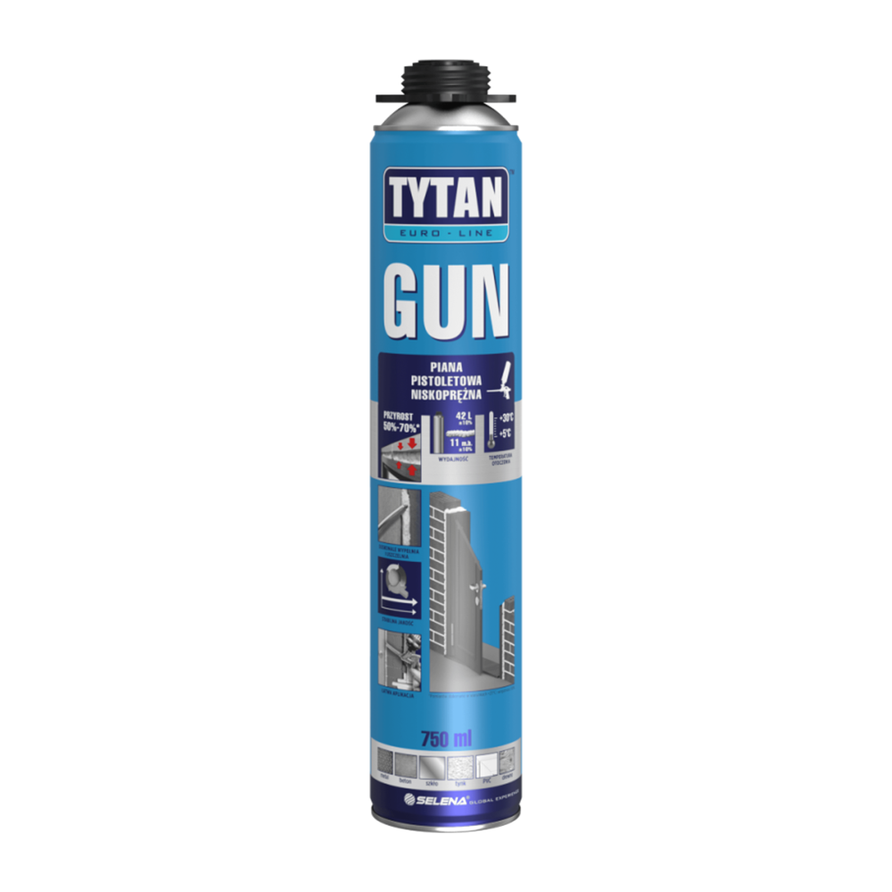 Piana pistoletowa Tytan Euro–Line GUN wielosezonowa rekomendowana jest do szerokiej gamy zastosowań w budownictwie: montowanie, uszczelnianie, wypełnianie, izolowanie.
