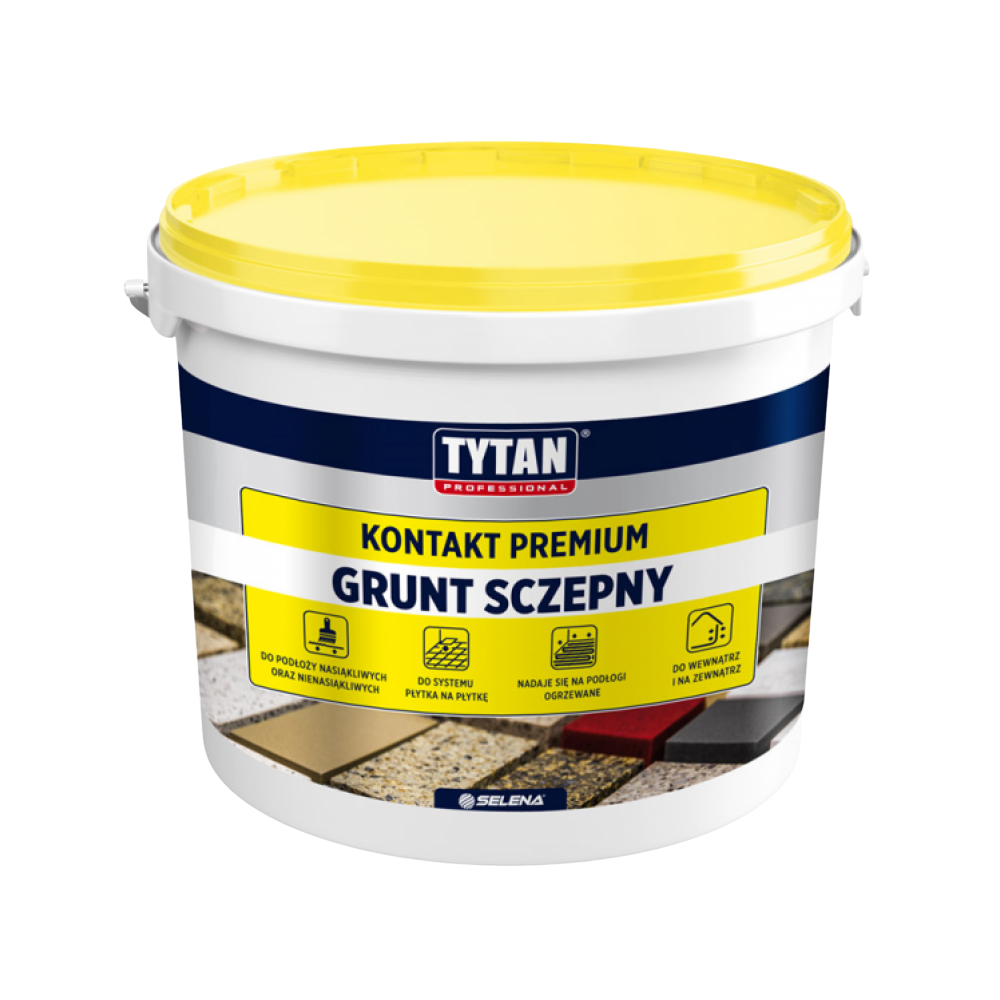 Grunt sczepny KONTAKT PREMIUM jest preparatem gotowym do użycia, na bazie dyspersji akrylowej z dodatkiem kruszywa kwarcowego. Zwiększa szorstkość podłoża i wzmacnia oraz poprawia przyczepność warstw. Przy podłożach mieszanych wyrównuje i reguluje ich chłonność. Ma zastosowanie np. w remontach bez kucia – w szczególności przy systemach montażu płytek ceramicznych oraz gresowych na starej okładzinie ceramicznej lub kamiennej oraz przy podłogach ogrzewanych.
