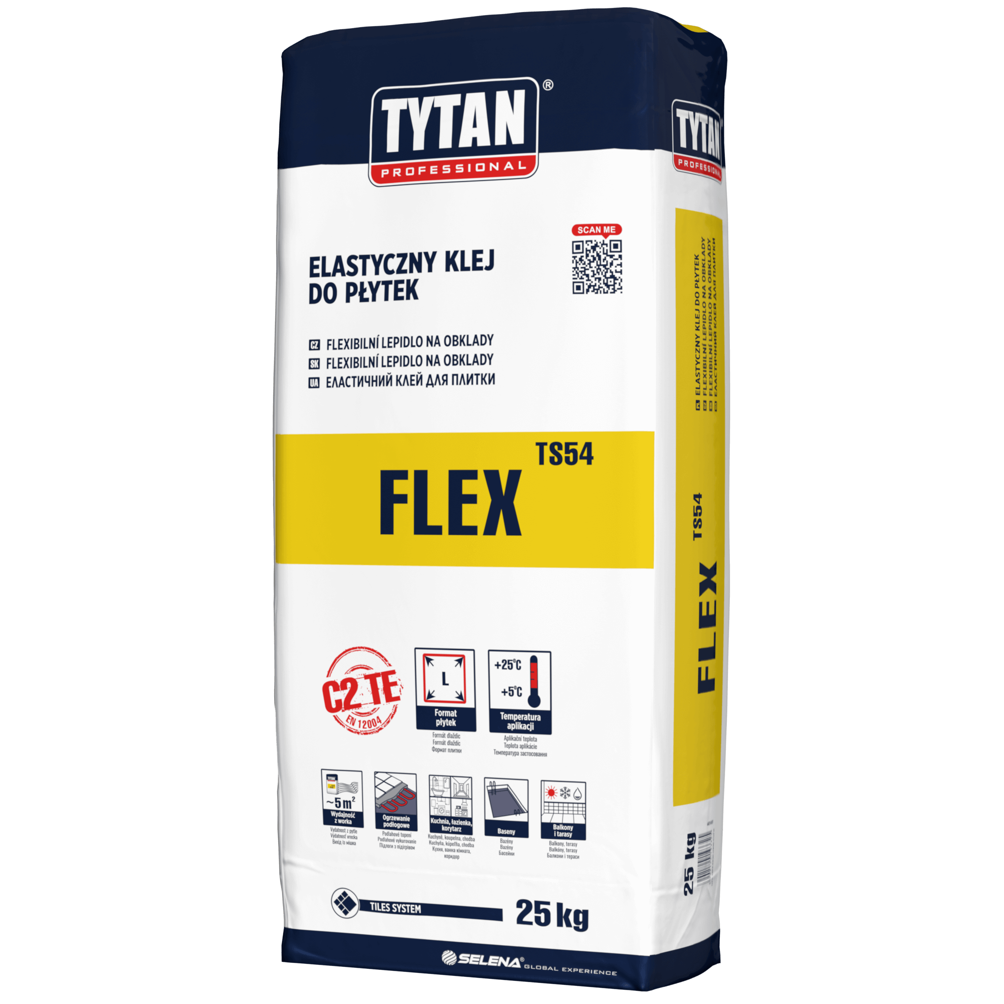 Klej TS 54 FLEX rzeznaczony jest do przyklejania małych i dużych płytek ściennych oraz podłogowych, płytek ceramicznych, glazury, terakoty, klinkieru, gresu, mozaiki, płytek lastrykowych i cementowych, płytek z kamienia naturalnego (po wcześniejszym sprawdzeniu odporności na przebarwienia) oraz konglomeratów kamiennych w małych i dużych formatach. Przeznaczony na każde typowe oraz wymagające podłoże, wewnątrz i na zewnątrz pomieszczeń; w tym balkony i tarasy, podłogi ogrzewane, kuchnie, łazienki, baseny, ciągi komunikacyjne.